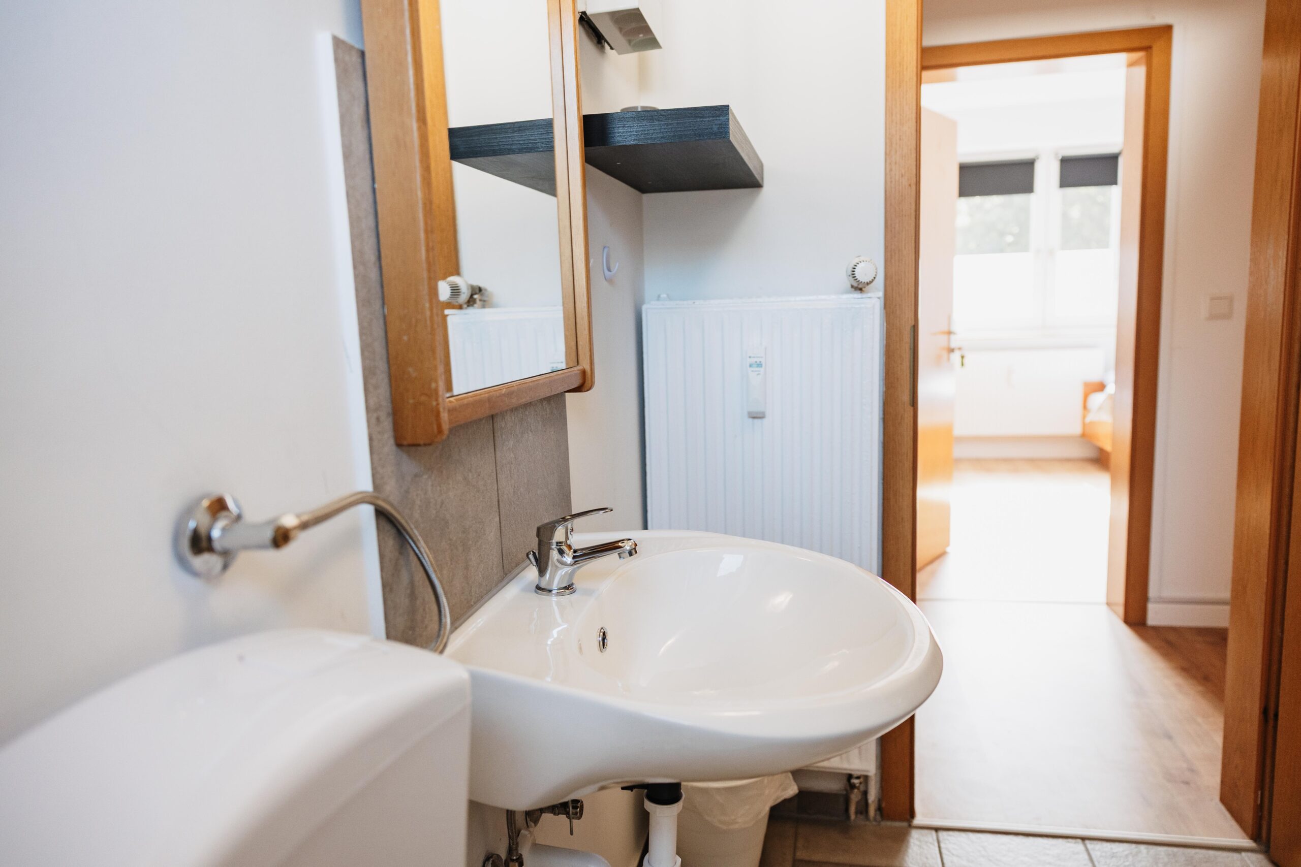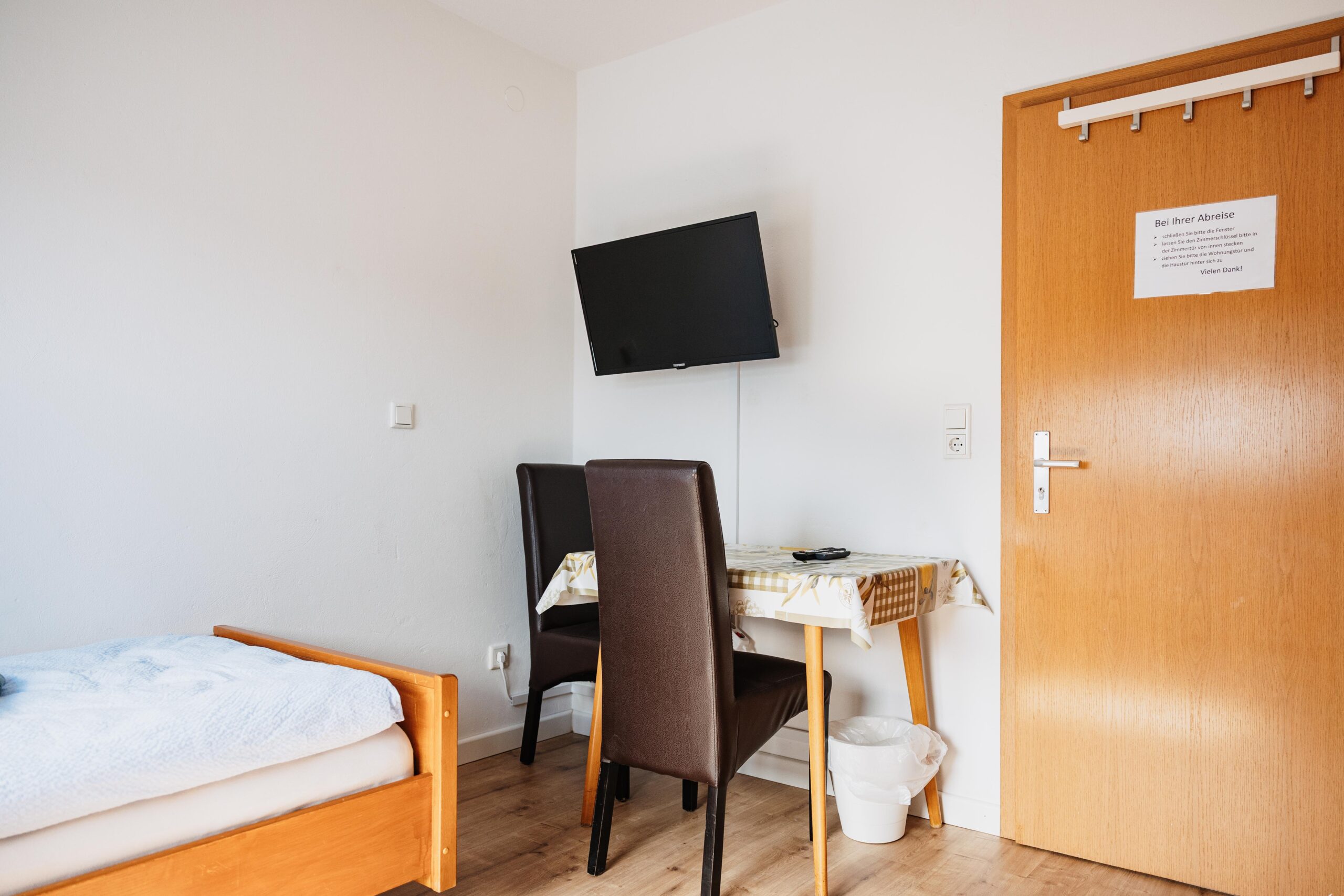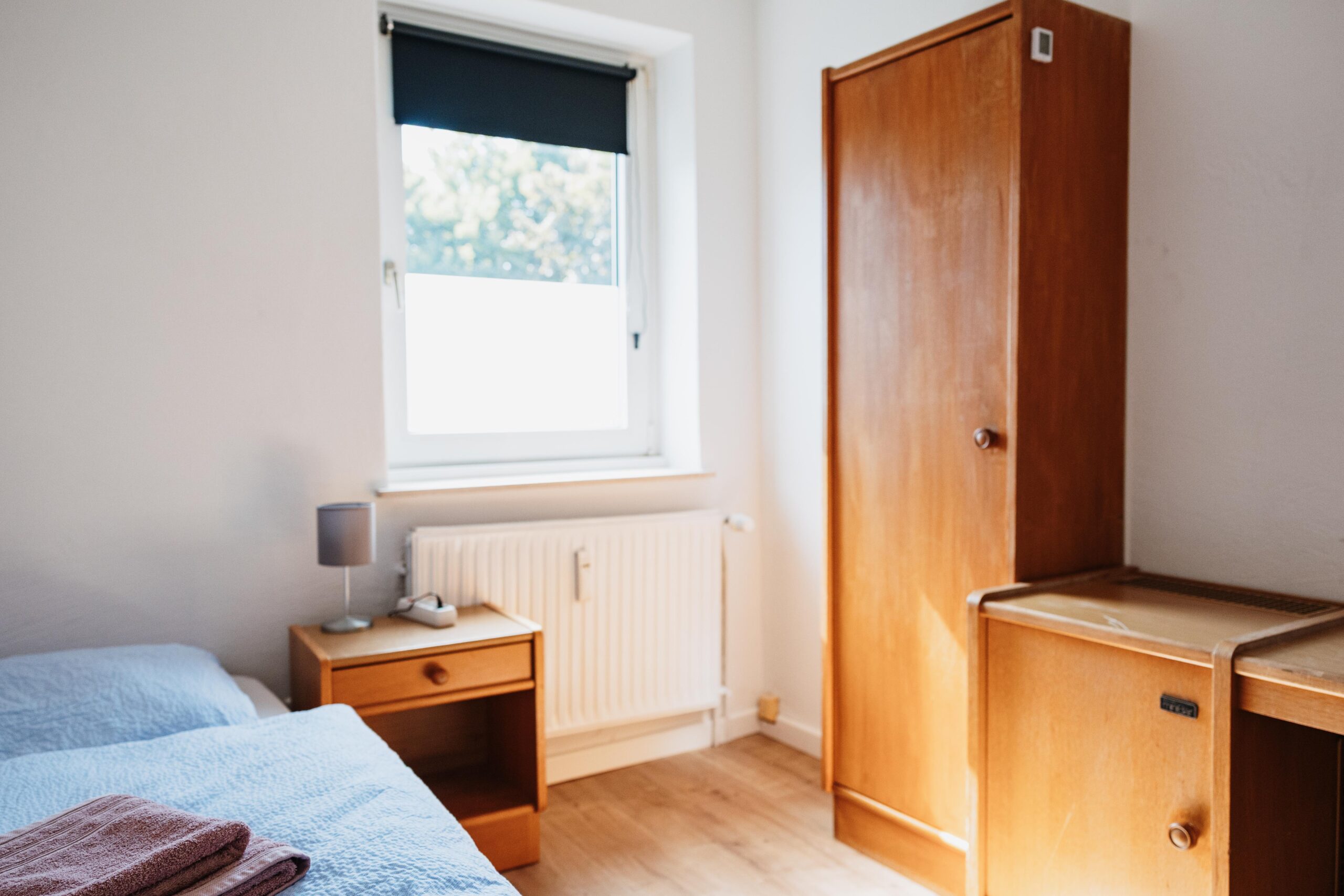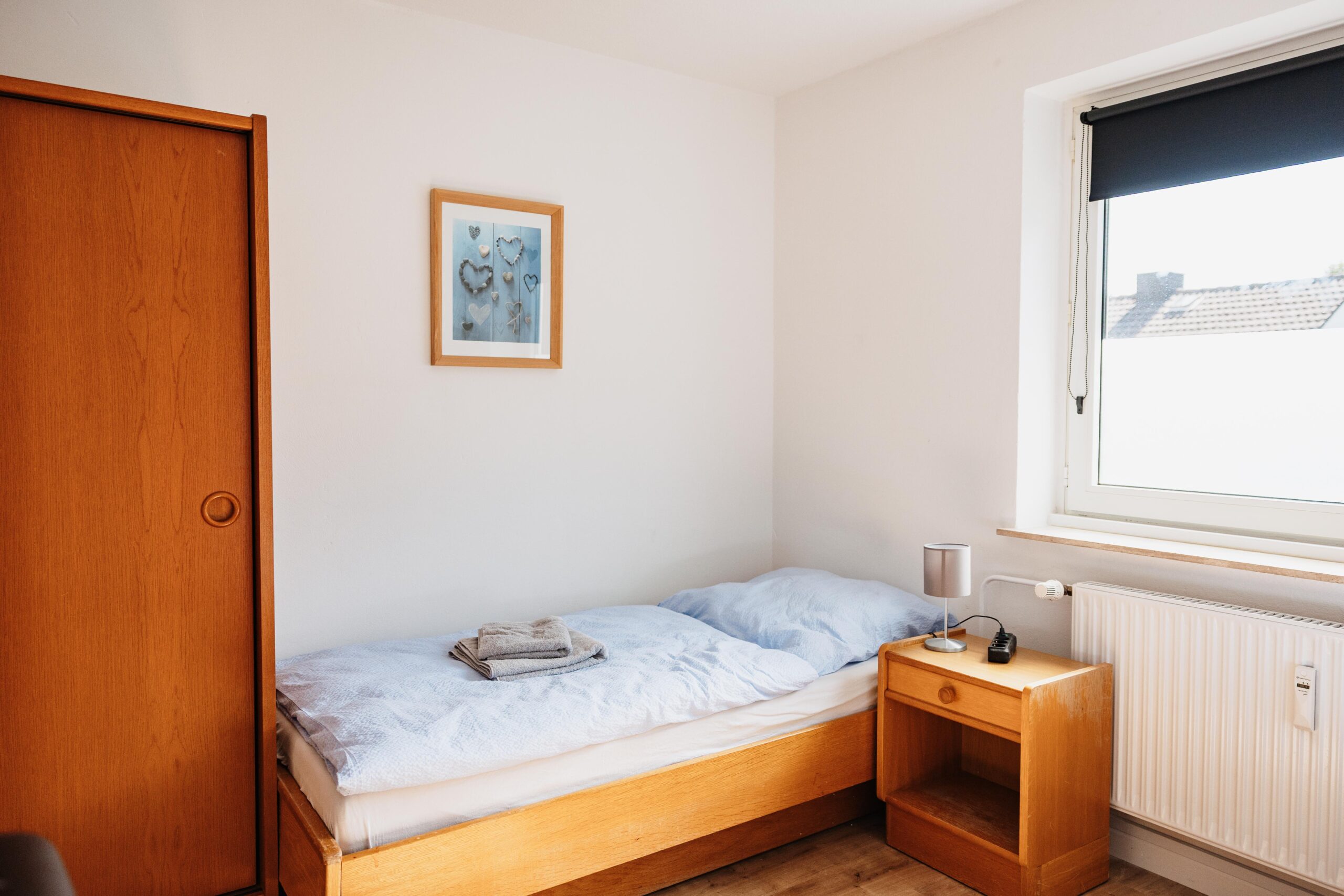 El piso de 72 m² para instaladores en Brilon ofrece espacio para hasta 5 personas. Está situado en la 1ª planta y dispone de dos habitaciones dobles con camas individuales y una habitación individual, ideal para grupos o compañeros que viajan juntos.