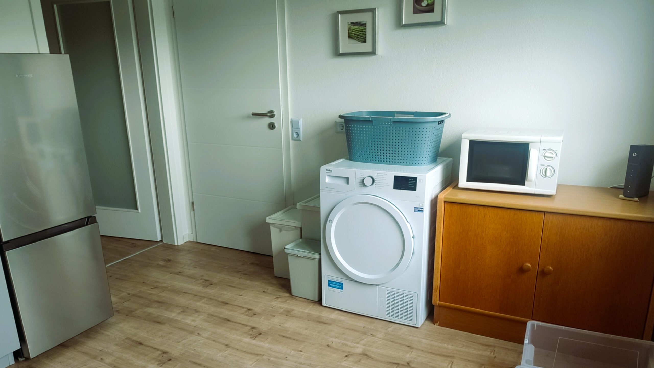 Hay lavadora y secadora de uso gratuito.