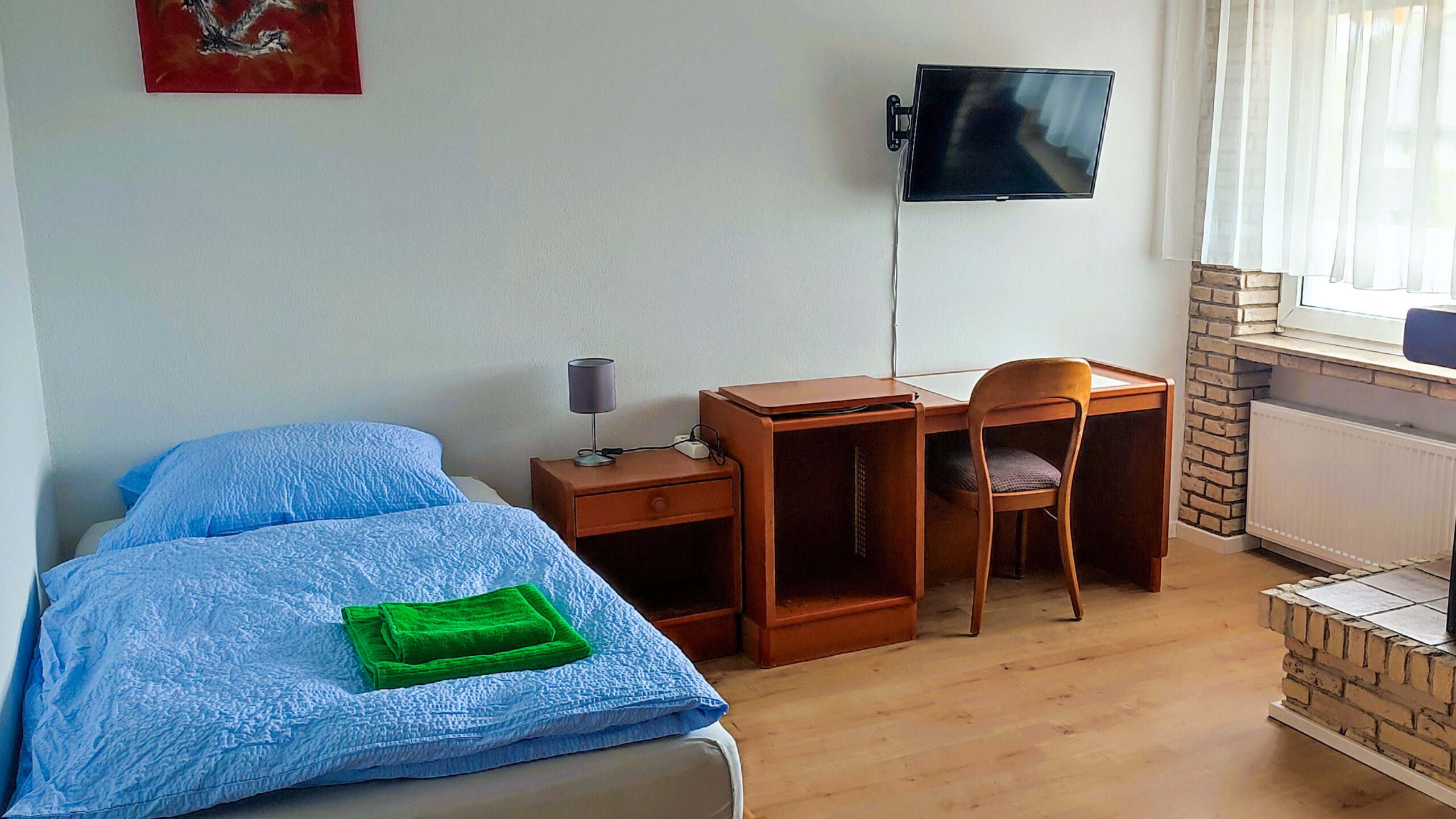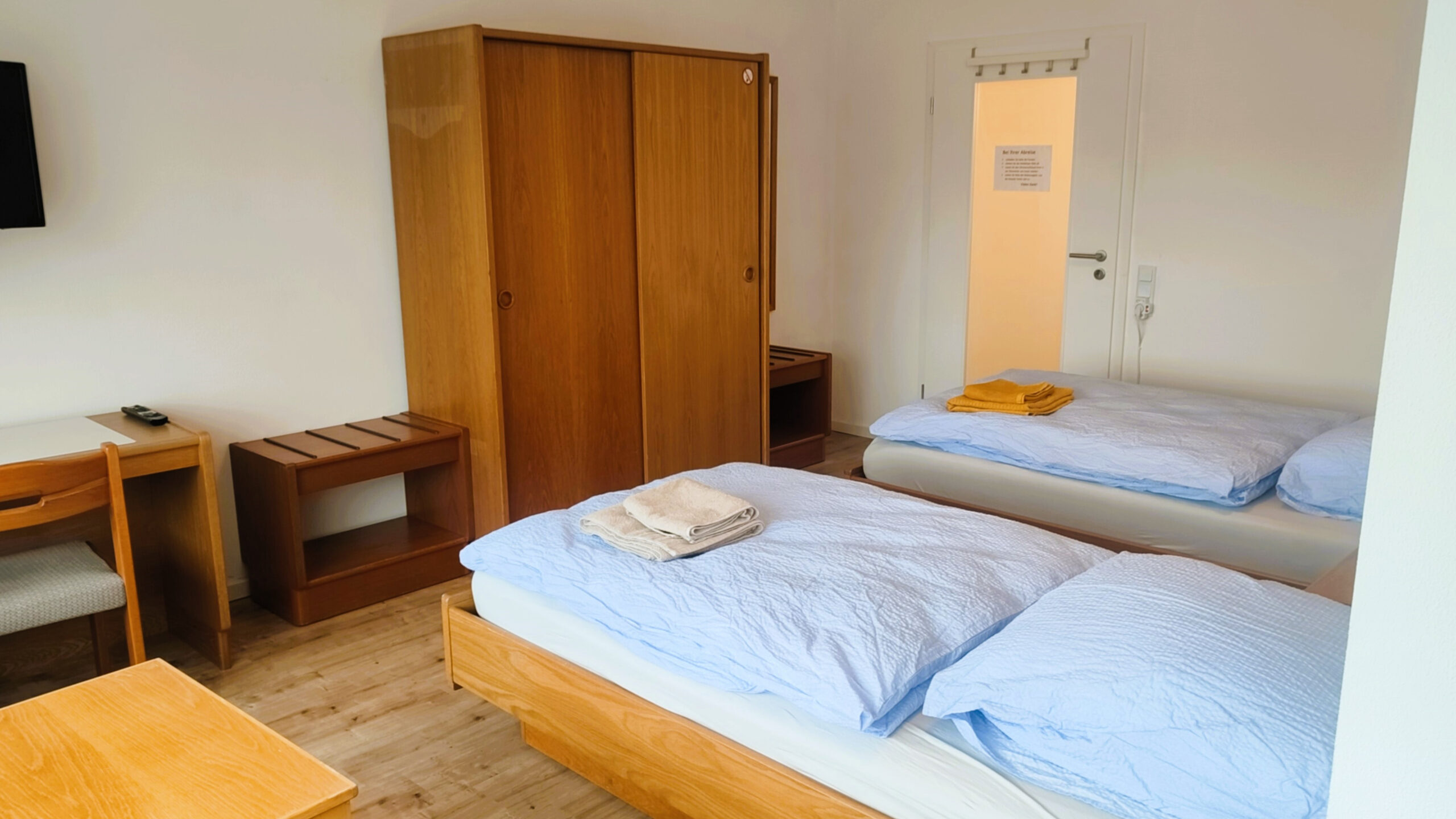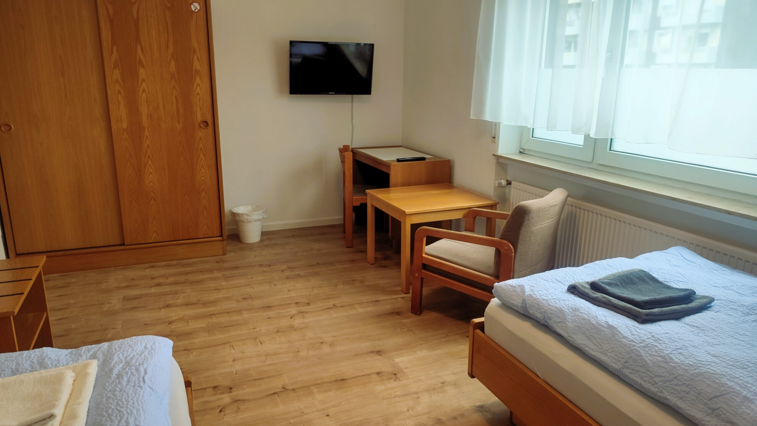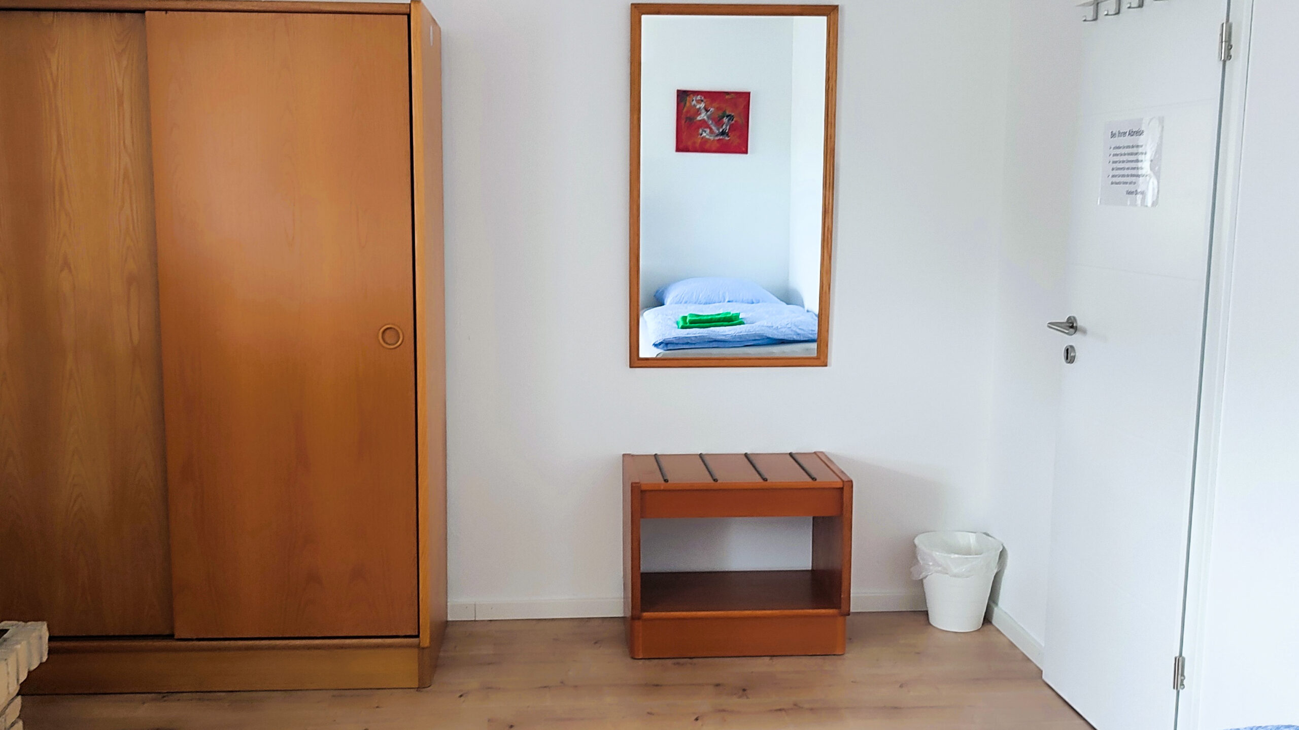 El piso también dispone de un cuarto de baño compartido (ducha, WC, lavabo) y un WC adicional. Las habitaciones están equipadas con cerraduras de seguridad y puedes esperar entretenimiento con un televisor de 32 pulgadas en cada habitación.